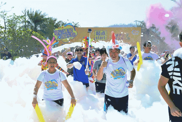 發(fā)令槍一聲令下,活動(dòng)參與者們伴隨勁歌熱舞,腳踏泡沫,歡樂(lè)開(kāi)跑!本次活動(dòng)的起點(diǎn)是花海長(zhǎng)廊一號(hào)驛站,終點(diǎn)是芒洲濕地公園,全程約8.55公里。跑完全程后,星樂(lè)度·橫琴露營(yíng)樂(lè)園還有許多驚喜等著大家~
