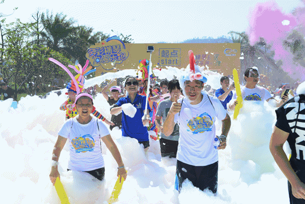 大家在花海長(zhǎng)廊一號(hào)驛站穿過(guò)240平方米的泡泡池,活力出發(fā),在花海長(zhǎng)廊二號(hào)驛站迎接水槍、水彈的洗禮,在花海長(zhǎng)廊三號(hào)驛站,擁抱色彩繽紛的粉末,年輕的心,就是要出彩!在終點(diǎn)站芒洲濕地公園,迎接大家的是榮耀匯聚、勛章授予和終極版的刺激體驗(yàn)——巨型泡泡機(jī)。一路狂歡,不計(jì)輸贏。