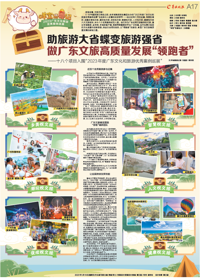 “2023年度廣東文化和旅游優(yōu)秀案例巡展”由羊城晚報(bào)報(bào)業(yè)集團(tuán)主辦,旨在為廣東建成“旅游業(yè)高質(zhì)量發(fā)展示范省”探尋優(yōu)秀案例。此次巡展活動(dòng)從3月20日正式公開(kāi)向全省征集,共收到近百個(gè)優(yōu)秀文旅案例,包括廣州長(zhǎng)隆旅游度假區(qū)、正佳廣場(chǎng)、廣州熱雪奇跡、順德華僑城歡樂(lè)海岸PLUS、江門(mén)赤坎華僑古鎮(zhèn)、勵(lì)豐文化、熹樂(lè)谷溫泉度假區(qū)等眾多知名文旅企業(yè)、項(xiàng)目。最終,經(jīng)過(guò)近兩個(gè)月的征集、考察和調(diào)研,包括橫琴星樂(lè)度·露營(yíng)小鎮(zhèn)在內(nèi)的18個(gè)項(xiàng)目正式入圍。