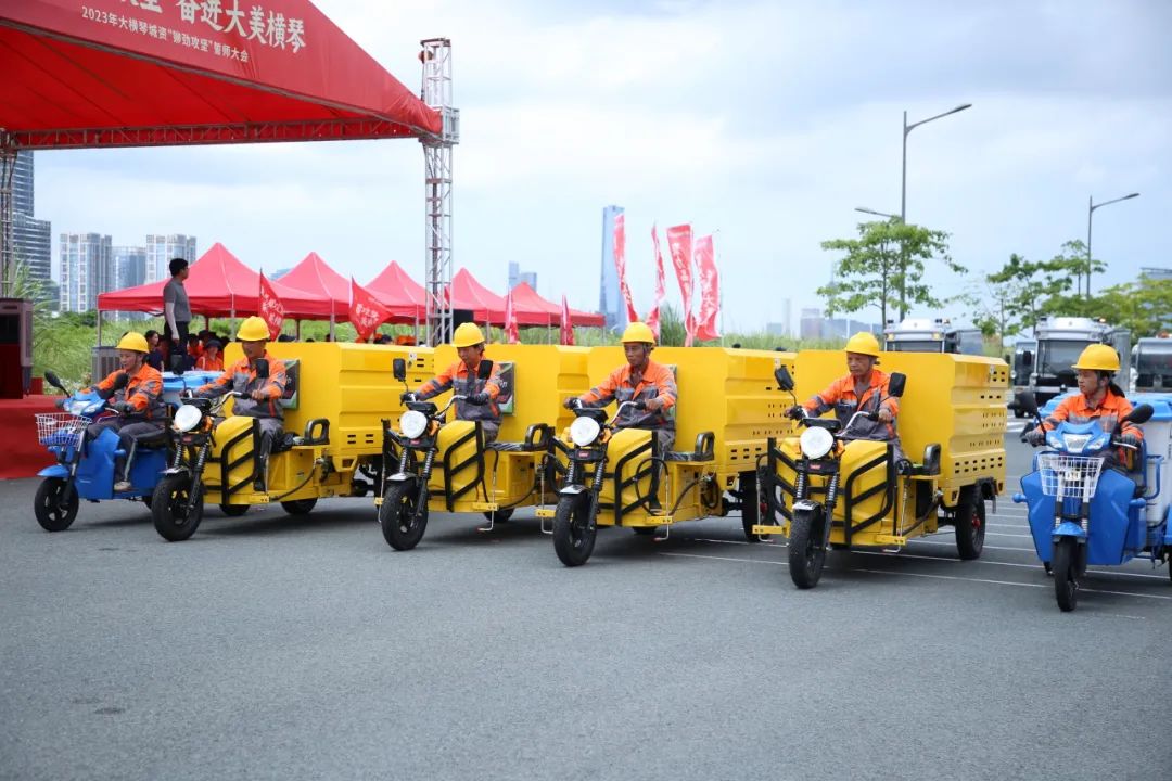 6月29日,由橫琴粵澳深度合作區(qū)(以下簡(jiǎn)稱合作區(qū))城市規(guī)劃和建設(shè)局指導(dǎo),珠海大橫琴城市公共資源經(jīng)營(yíng)管理有限公司(以下簡(jiǎn)稱大橫琴城資)主辦“聚力品質(zhì)攻堅(jiān) 奮進(jìn)大美橫琴”鉚勁攻堅(jiān)誓師大會(huì),旨在通過標(biāo)準(zhǔn)化作業(yè)演示和機(jī)械化車隊(duì)展示的方式,吹響新一輪城市服務(wù)品質(zhì)提升的嘹亮號(hào)角,為營(yíng)造優(yōu)美城市環(huán)境、迎接合作區(qū)掛牌兩周年蓄勢(shì)賦能。
