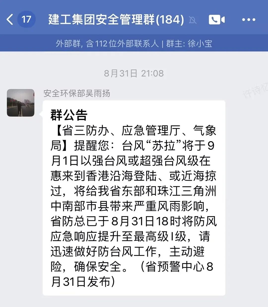 在臺風(fēng)登陸前后,珠海建工集團(tuán)所在項(xiàng)目總體情況穩(wěn)定。