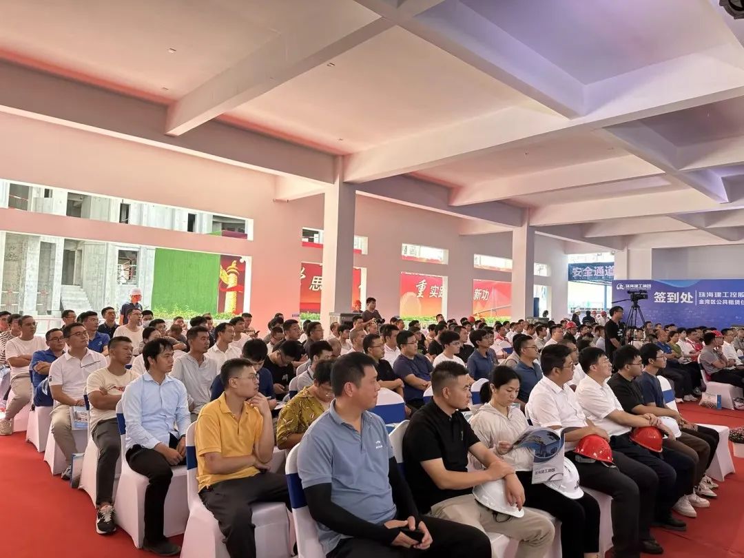珠海市住房和城鄉(xiāng)建設局四級調研員孫飛,金灣區(qū)住房和城鄉(xiāng)建設局黨組成員梁德華,金灣區(qū)市場監(jiān)督管理局一級主任科員殷電軍,金灣區(qū)建設工程質量監(jiān)測站站長王武,金灣區(qū)住房保障中心主任劉柳亮,珠海市建筑業(yè)協(xié)會王愛志,珠海市聯(lián)港城建公司副總經(jīng)理曹云,珠海市建筑設計院監(jiān)理部總經(jīng)理宋祖興,珠海建工集團黨委書記、董事長黃如華等單位及領導出席活動儀式,市、區(qū)建筑領域200余人參加觀摩學習。會議由珠海建工集團黨委委員、總經(jīng)理助理李純剛主持。