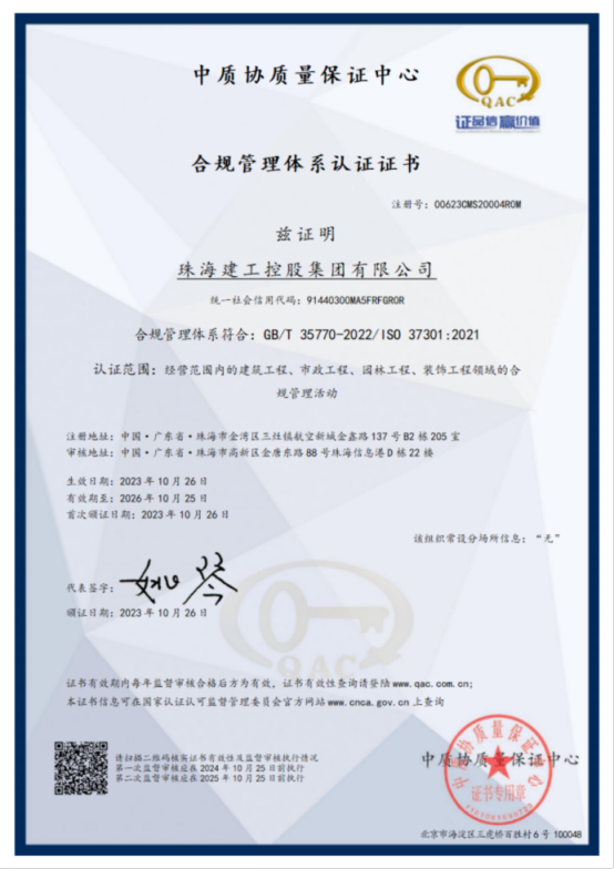 熱烈祝賀珠海建工集團(tuán)順利通過(guò)ISO 37301合規(guī)管理體系認(rèn)證審核。