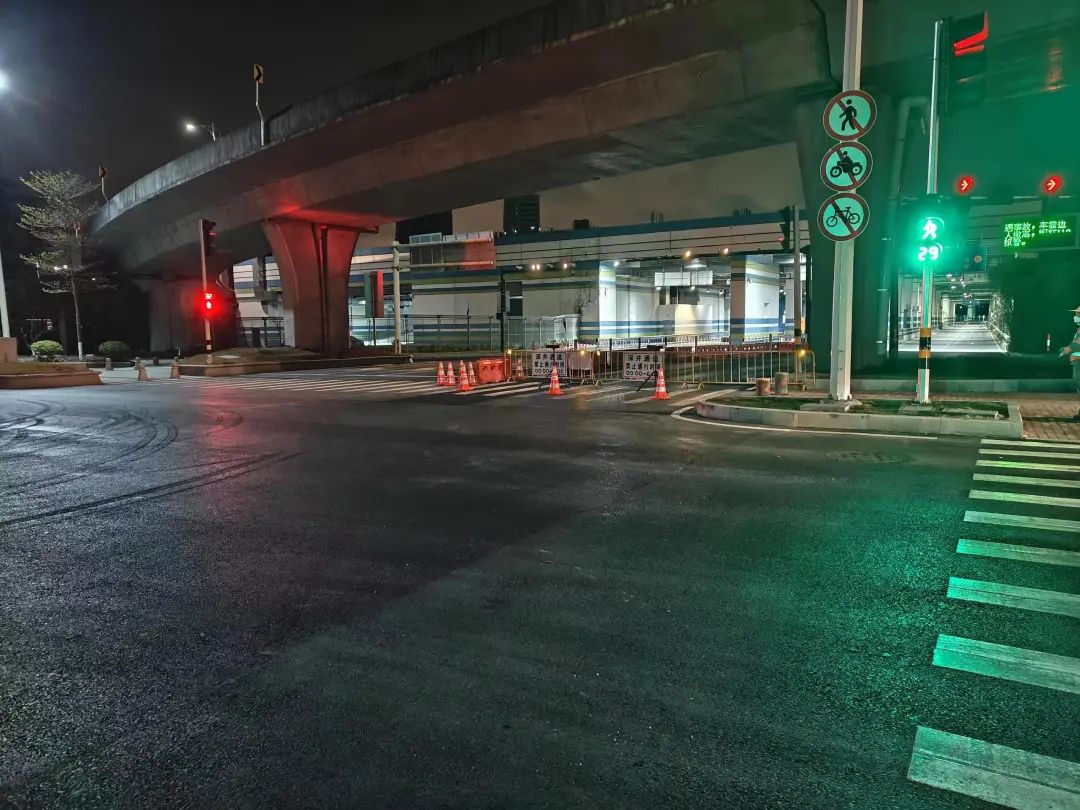 對(duì)深井通道“二線”通道內(nèi)有局部破損、高差的道路進(jìn)行維修,共計(jì)維修瀝青路面990㎡,有效提高了該段道路行車(chē)的安全性和舒適性。此外,通過(guò)改造交通信號(hào)燈、拓寬車(chē)道、將綠化帶改造為瀝青路面等多種方式,進(jìn)一步優(yōu)化交通組織,保障道路交通秩序環(huán)境安全有序。