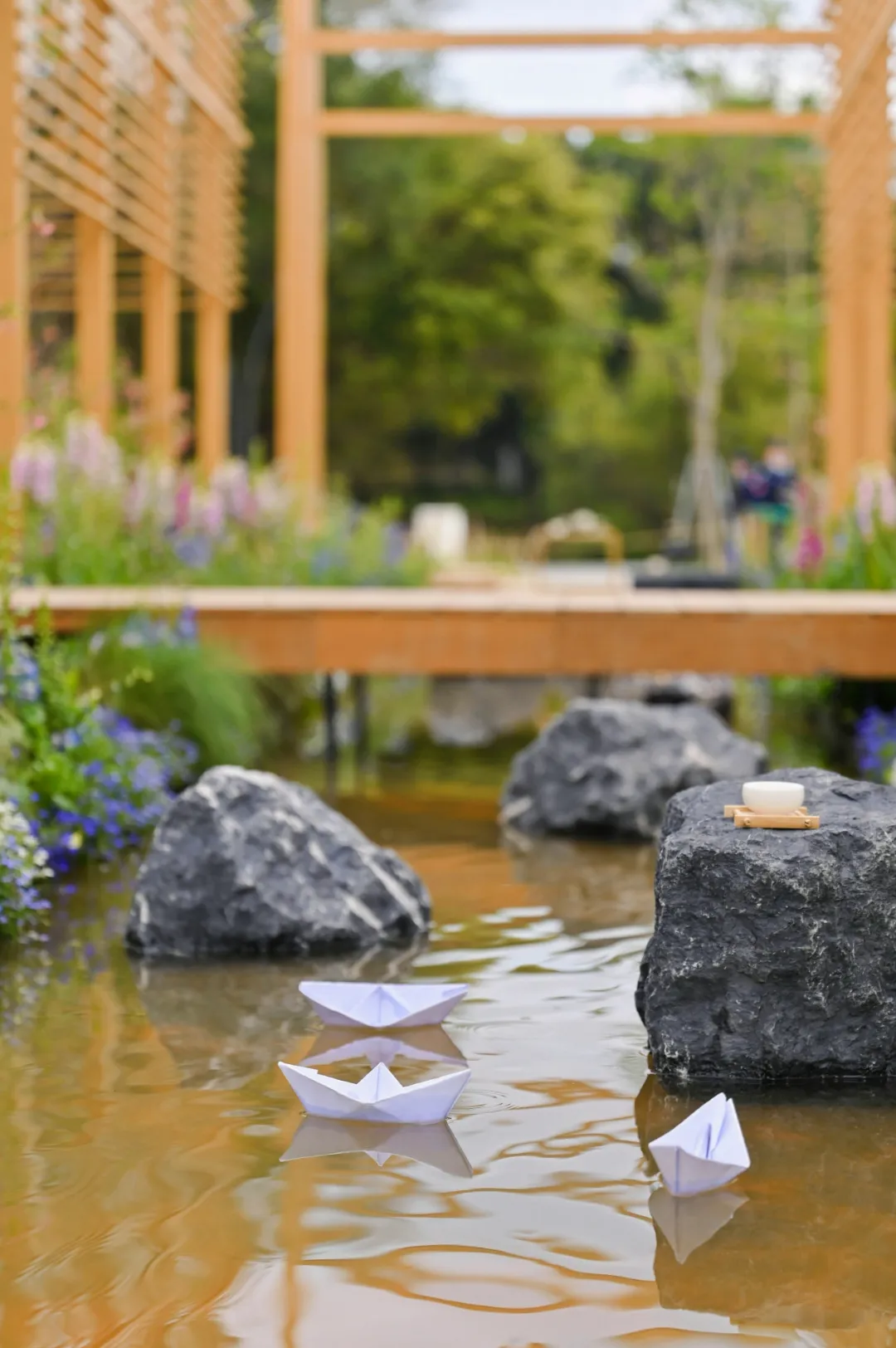 盈盈一水間,清茶一盞寄流年。橫琴展園中的一大亮點(diǎn),便是位于園區(qū)中央的互動(dòng)水景與橋梁。