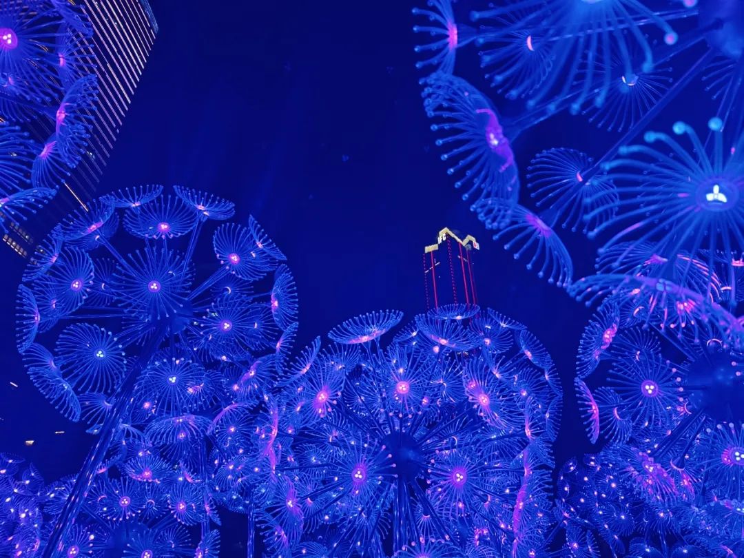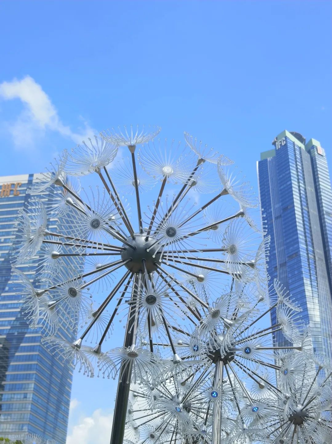 在橫琴金融島中央公園,40支高度為2.5米、直徑為0.6米的蒲公英燈飾如同希望的使者,散發(fā)著明亮而溫暖的光芒,為夜幕下的公園增添了一份璀璨的光彩。