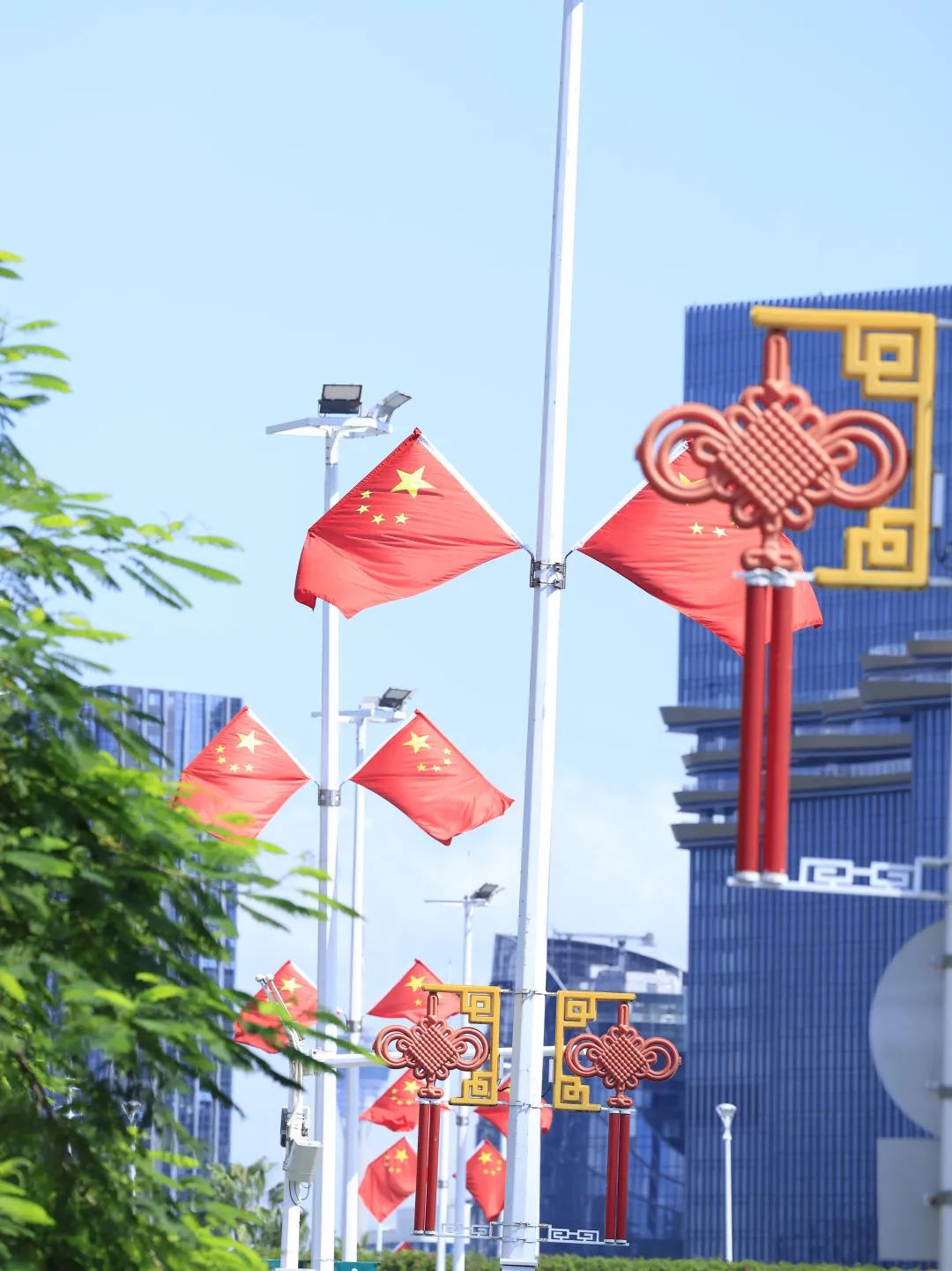 隨著國慶的腳步漸近,橫琴粵澳深度合作區(qū)(以下簡稱合作區(qū))處處洋溢著喜慶歡快的節(jié)日氛圍,高高掛起的中國結,璀璨絢麗的創(chuàng)意燈飾,清新怡人的綠化美景……每一處都在訴說著節(jié)日的喜悅,在合作區(qū)城市規(guī)劃和建設局指導下,珠海大橫琴城市公共資源經(jīng)營管理有限公司(以下簡稱大橫琴城資)全面開展城市美化亮化工作,在合作區(qū)各主次干道、公園、重要節(jié)點等地,精心設計布置,以節(jié)日盛裝,向祖國母親深情告白。
