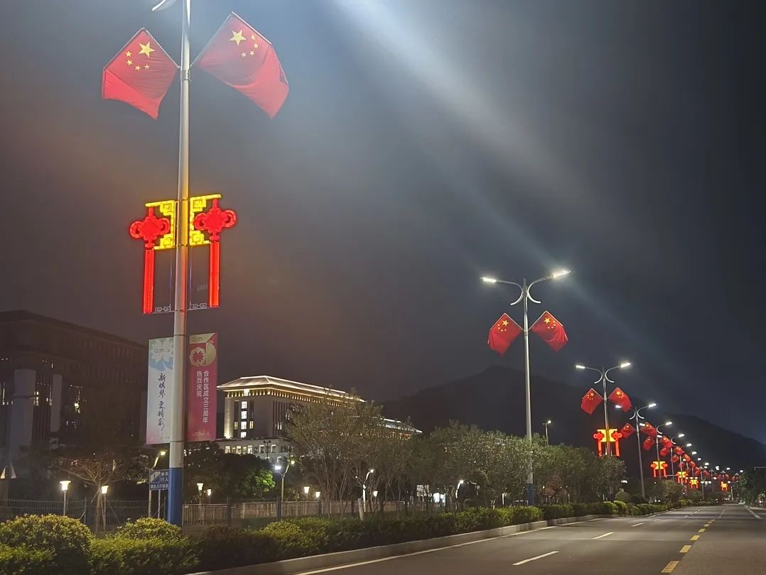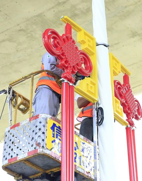 大橫琴城資在港澳大道、環(huán)島西路等重點路段懸掛了 230套中國結,以亮麗的形象喜迎國慶。