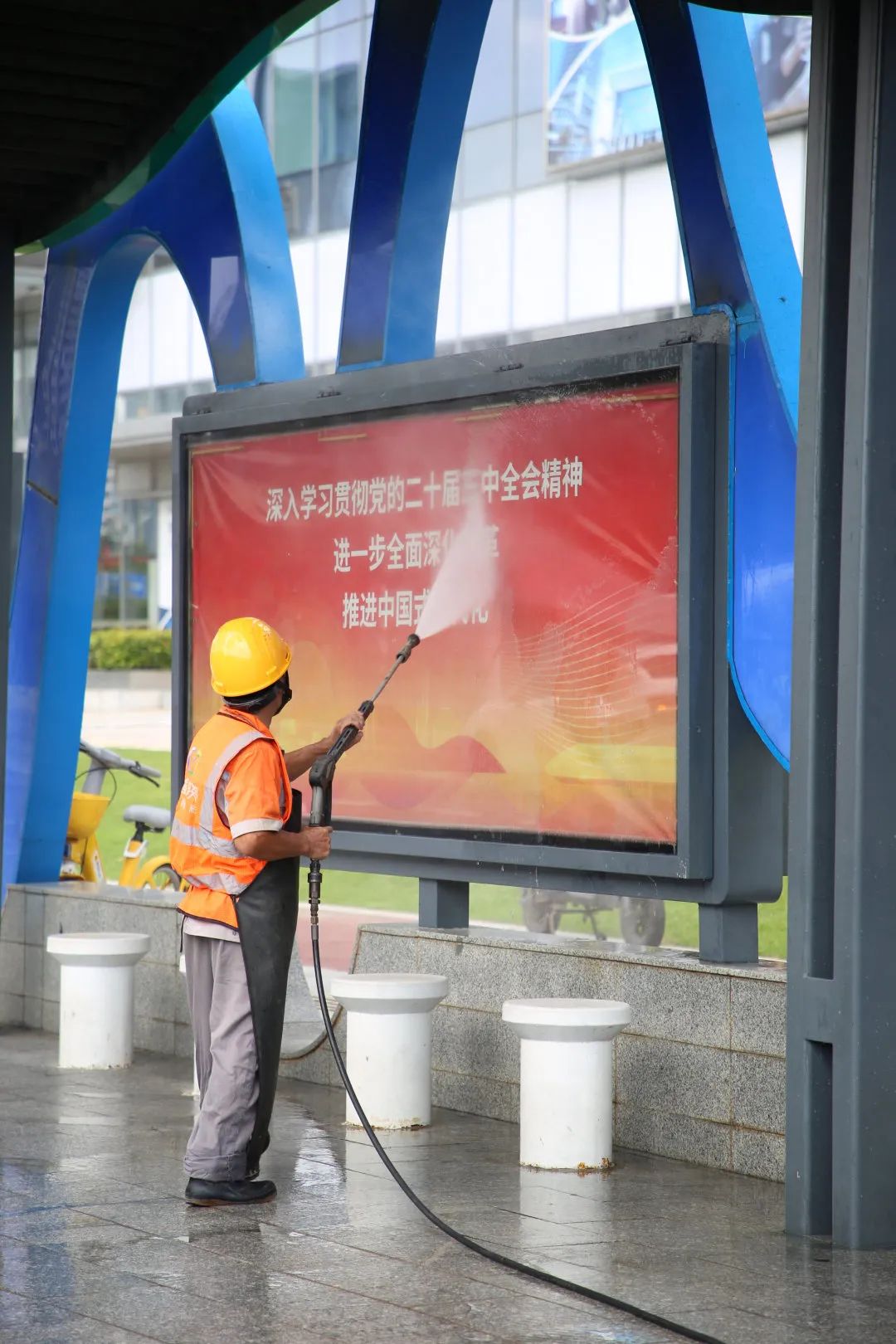 對管養(yǎng)范圍內的公交站進行了全面清洗,為候車的居民和旅客營造舒適干凈的候車環(huán)境,讓出行更加舒心。