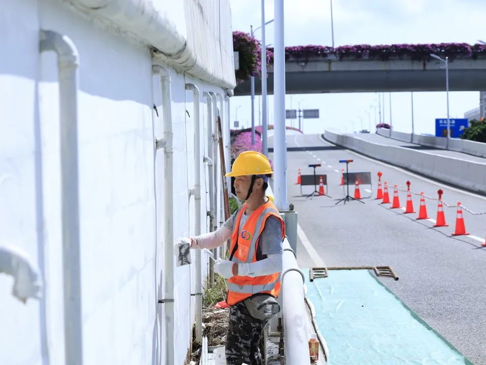 道路、橋梁作為基礎交通設施,也是城市景觀的重要組成部分。為打造靚麗舒適的出行環(huán)境,大橫琴城資在港澳大道立交主線橋及匝道、濠江路立交主線橋及匝道進行防撞墻和引橋擋墻的打磨、找平、刷漆等養(yǎng)護作業(yè),施工面積達20000㎡,在美化通行環(huán)境、提升路容路貌的同時,切實消除安全隱患,提升了道路通行安全系數(shù)。